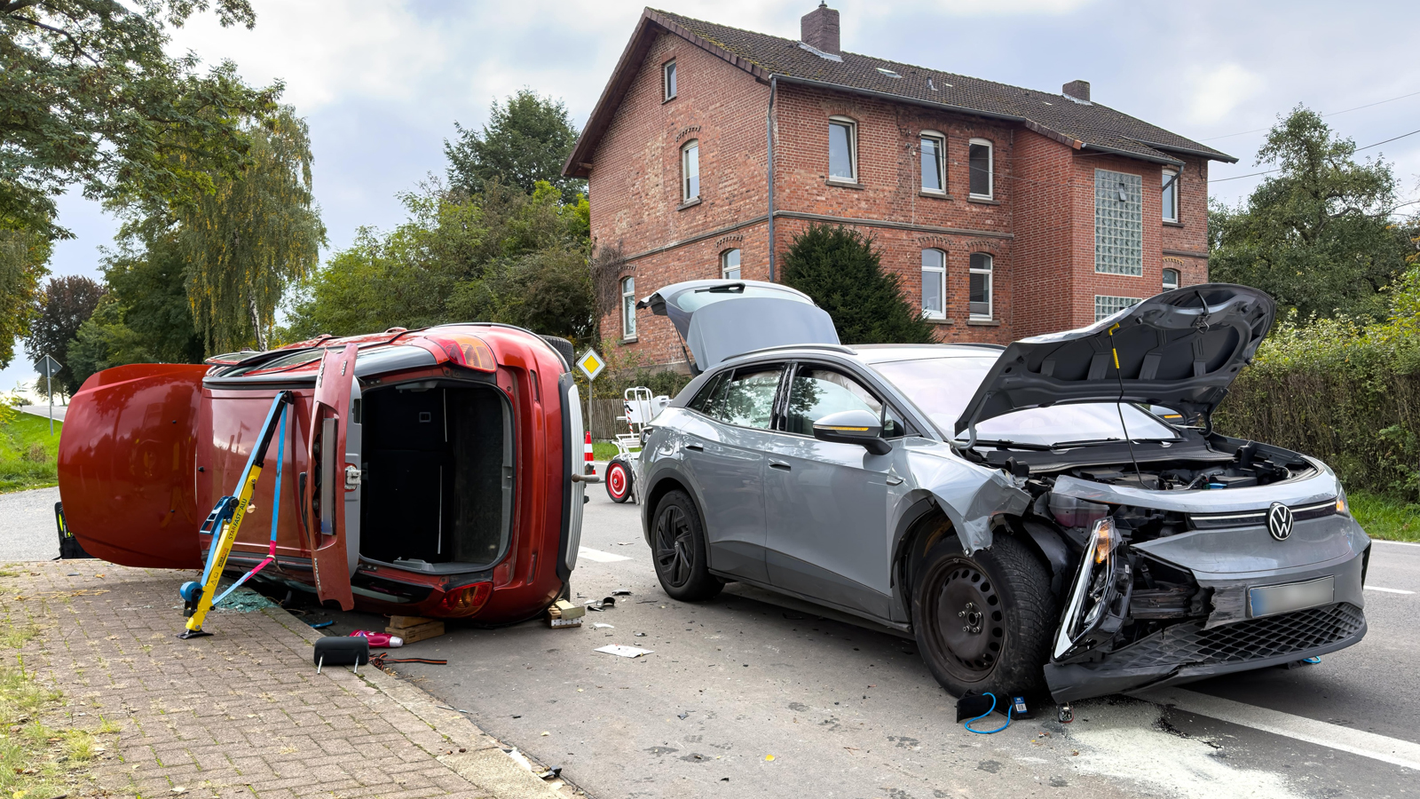 Die Feuerwehr Hevensen sicherte gemeinsam mit Kräften aus Gladebeck die Einsatzstelle und sperrte die Kreisstraße in beide Richtungen. Da eines der beteiligten Fahrzeuge ein vollelektrisches Modell war, zog die Feuerwehr die Hochvolt-Sicherungen, um das elektrische System spannungsfrei zu schalten.