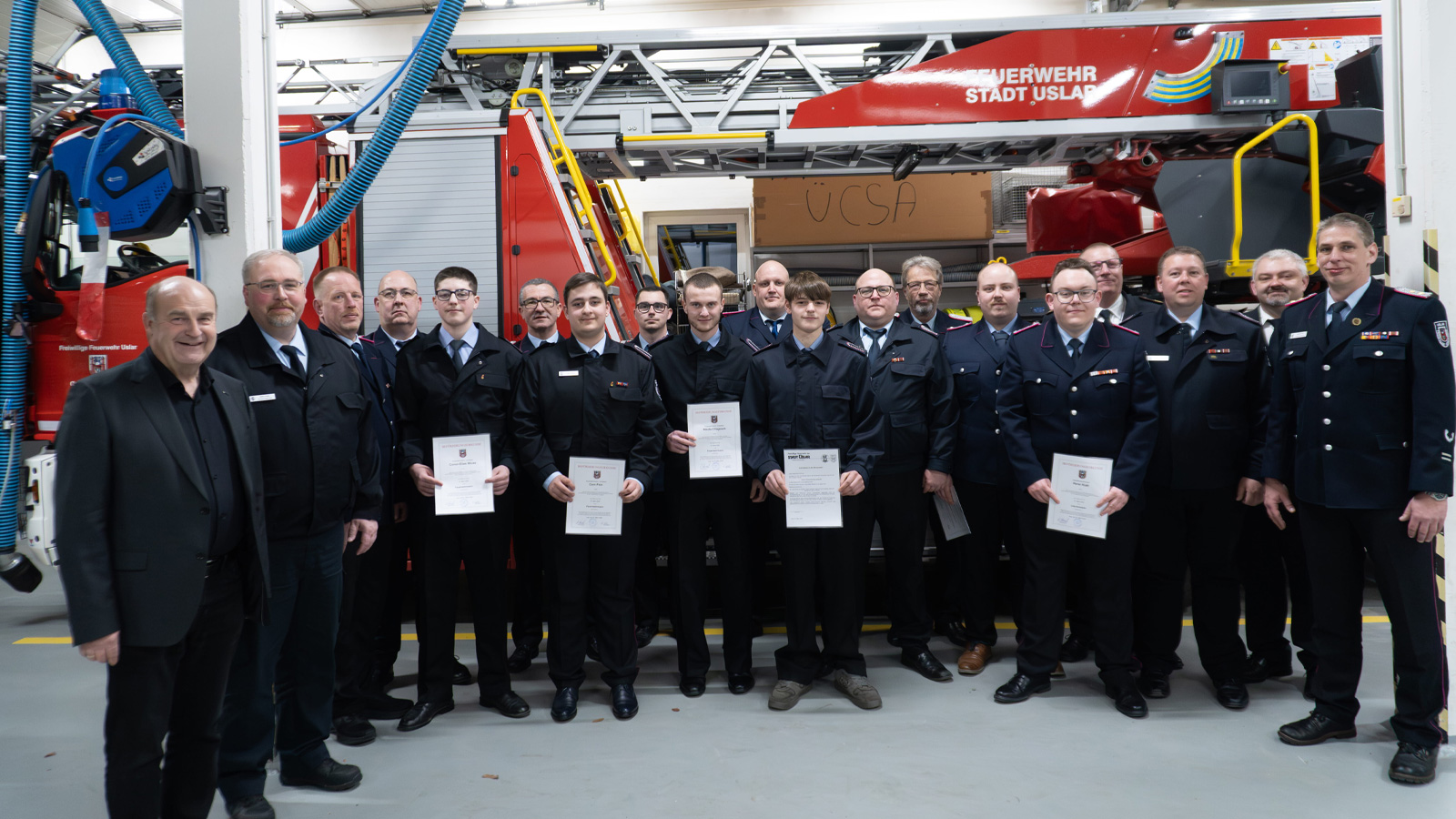 Zum 31. Dezember 2025 zählte die Ortsfeuerwehr Uslar 62 aktive Mitglieder, darunter zehn Frauen. Hinzu kommen 13 Doppelmitglieder, elf Mitglieder der Jugendfeuerwehr, 25 Mitglieder der Alters- und Ehrenabteilung sowie 143 fördernde Mitglieder. Die Feuerwehr war im vergangenen Jahr an 36 Brandeinsätzen, 52 technischen Hilfeleistungen, neun Fehlalarmen sowie drei Dienstleistungen und Einsätzen im Bevölkerungsschutz beteiligt.