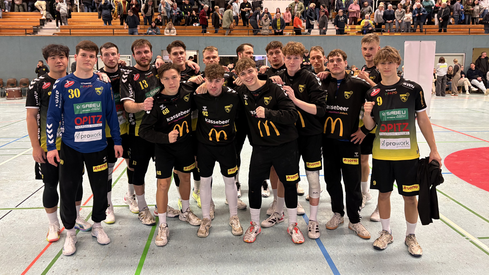 Mit großem Einsatz kämpften sich die Gastgeber zurück in die Partie. Treffer von Moritz Beltzer, Finn Fietz, Bode und Kang brachten den NHC Schritt für Schritt heran. Spätestens beim 25:25 war die Stimmung in der Schuhwallhalle wieder auf dem Höhepunkt, die Zuschauer unterstützten ihr Team lautstark.